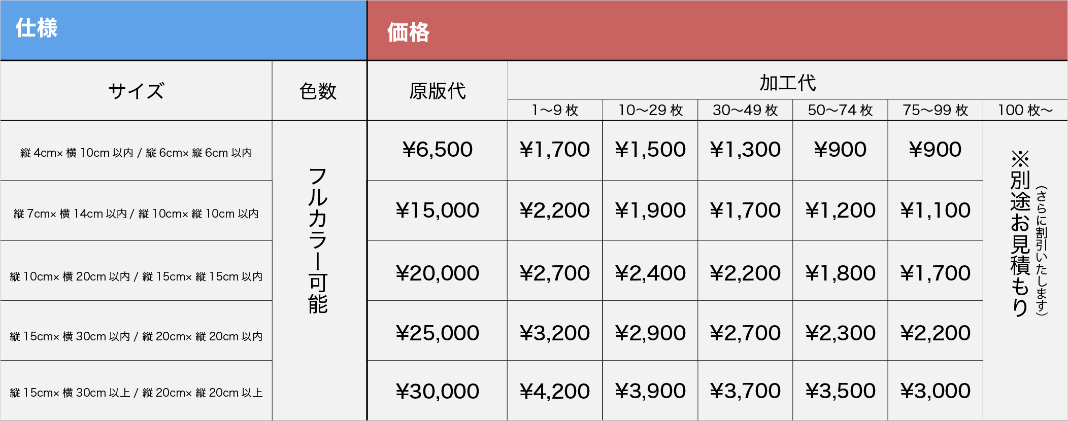 ワッペンを作成する際には、デザインを再現するための原版(型)の作成が必要となり、初回に原版代が発生します。デザイン刺繍と同様に、この原版は2回目以降の追加注文で再利用可能です。